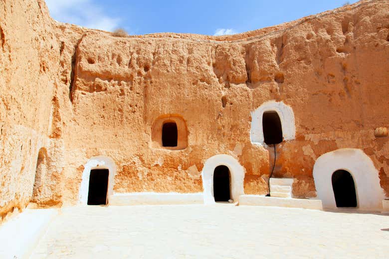 Seguiremos a continuación hacia Matmata, una localidad célebre por sus viviendas trogloditas excavadas en la roca arcillosa. Conoceremos la ingeniosa adaptación de los bereberes al clima extremo dentro de estas estructuras. Además, visitaremos una de estas casas y el famoso hotel Sidi Idriss, escenario de varias escenas de una de las películas de Star Wars. También disfrutaremos de un almuerzo en su restaurante.